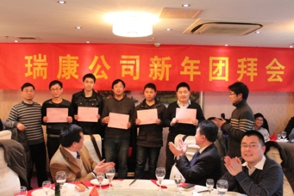 2013年1月底,公司2012年團(tuán)拜聚會(huì)在南京萬(wàn)家歡酒店隆重舉行,全國(guó)各地的瑞康同仁齊聚一堂,總結(jié)了12年的工作成就,共同展望公司的美好未來。期間,表彰和嘉獎(jiǎng)了公司表現(xiàn)突出的部門和員工,并頒發(fā)了2011和2012年瑞康初級(jí)工程師證書。